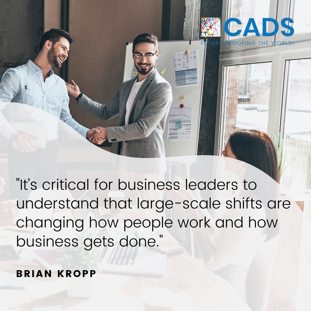Kropp identifies the key to creating an effective and productive business for the future; he implies that the changing world would affect how employees use their talents, such as visualizing product innovations and process innovations. Businesses can thrive by leaders understanding and supporting the workforce.