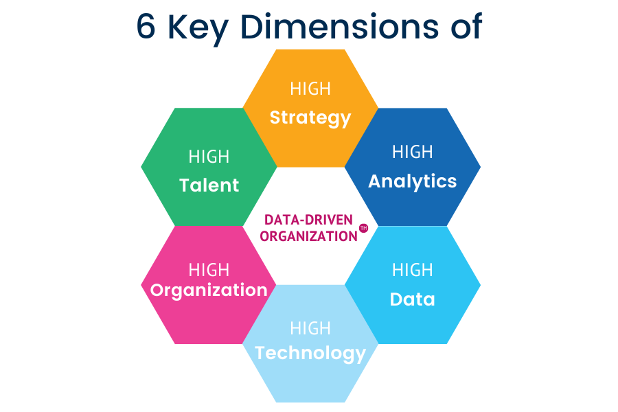 Under this model, we developed a Data-Driven Organization framework that assesses an organization’s maturity level based on 6 key dimensions that are fundamental to DDO change: