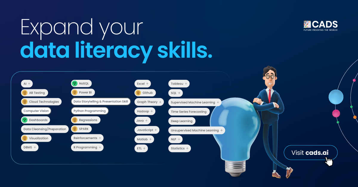 Join the ranks of data literate professionals with free courses on CADS AI Skills IntelligenceTM Platform. Create your profile and get access to over 50 data literacy courses from CADS, LinkedIn, Coursera, or other MOOC providers for your career development—all tailored specifically towards you under one roof (and in just seconds!).