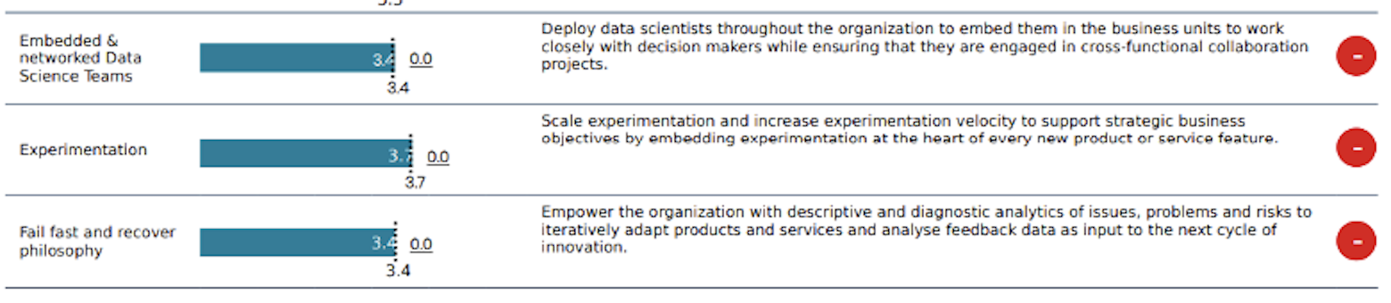 An important yet mostly overlooked dimension of human capital requirements and the practices for managing data leadership and technical talent towards your future state. Failures here can mean that you'd have invested or spent more.