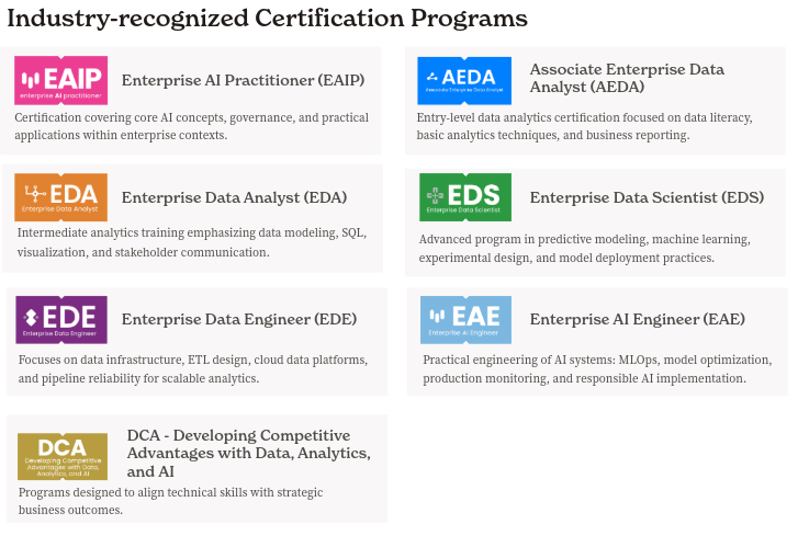 Note: The programmes listed below that you wish to enrol in require the following prerequisites: SQL Essentials, Python or R for Analytics, and Descriptive or Inferential Statistics.